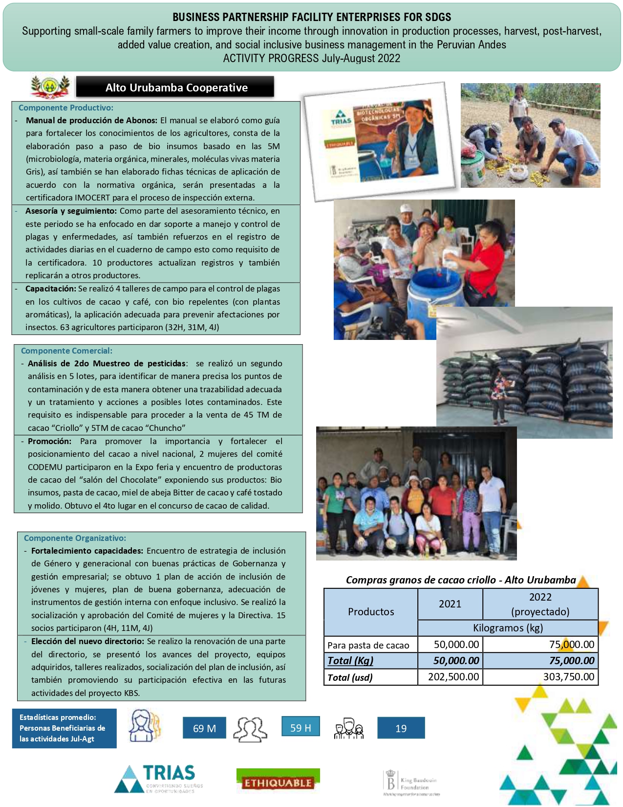 Conoce cómo avanza el proyecto impulsado por TRIAS/KBS y Ethiquable en Cusco, que busca el mejoramiento de ingresos de familias productoras a través de la innovación en procesos de manejo, cosecha, postcosecha, valor agregado, y gestión social inclusiva y empresarial.