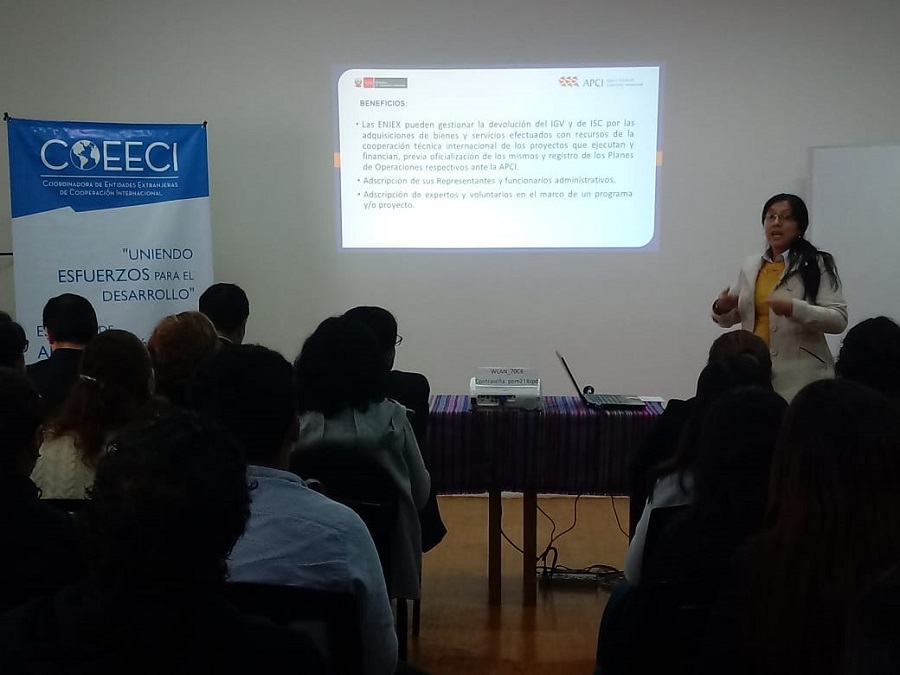Como parte de los servicios que ofrecemos a nuestras asociadas, el pasado 22 de junio del 2018 organizamos la capacitación “Fortalecimiento de capacidades de los integrantes del SINDCINR”, impartida por la Agencia Peruana de Cooperación Internacional (APCI). En esta oportunidad asistieron representantes, administrativos/as y contadores/as de 28 organizaciones miembros de COEECI.