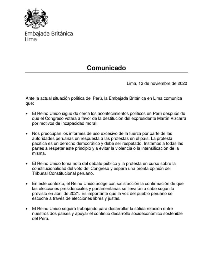 Comunicado de la Embajada Británica en Lima