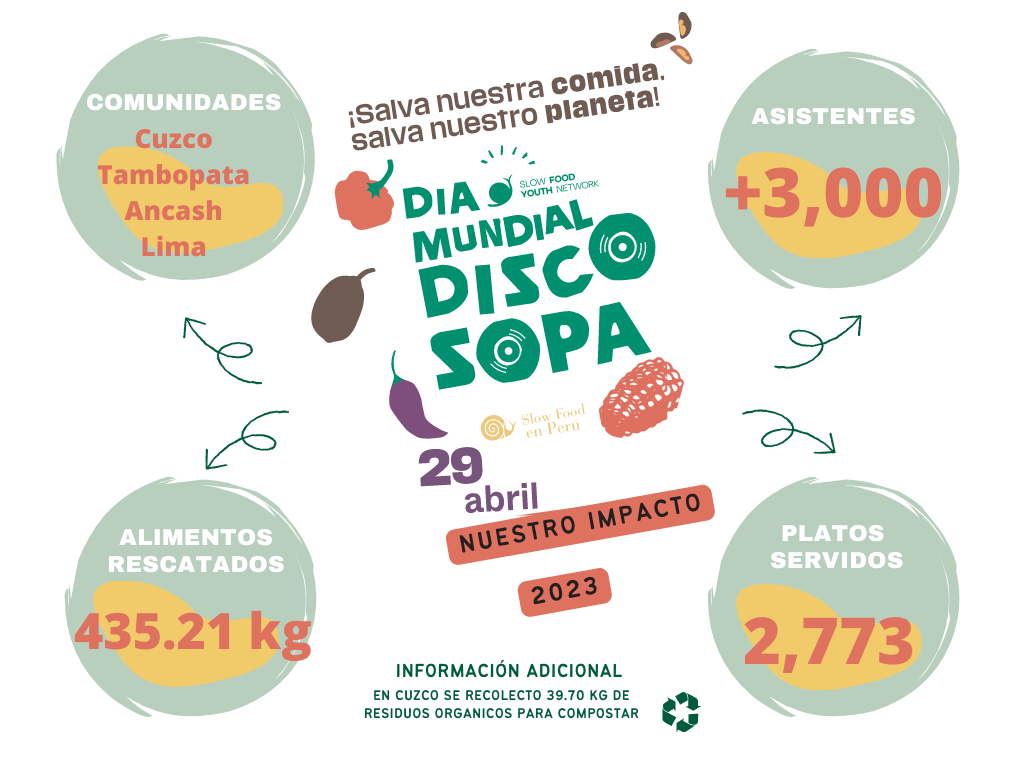Título: Día Mundial de la DISCO SOPA 2023 “Acción contra el desperdicio de alimentos”. Organización: Slow Food en Perú