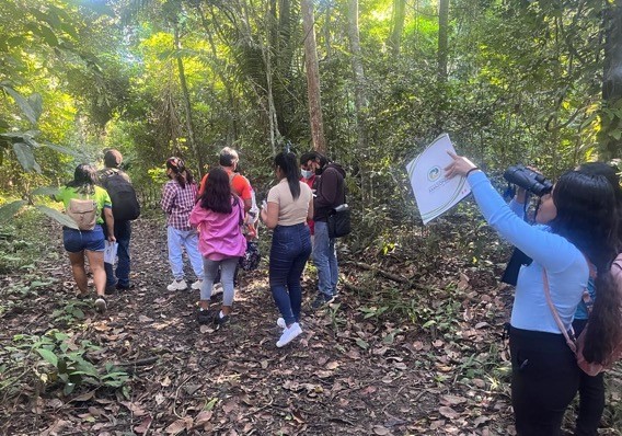 Luego, el sábado 14 de mayo, un grupo de jóvenes estudiantes de las carreras profesionales de Guías Oficiales de Turismo del SENATI y Administración de Operaciones Turísticas del I.E.S.T.P. Suiza, realizaron la observación y registro de aves en el Lodge El Abuelo (Divina Montaña), con apoyo del personal guardaparque del Parque Nacional Sierra del Divisor del SERNANP.