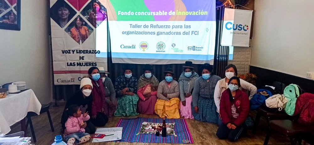 En el marco del proyecto Voz y Liderazgo de las Mujeres (VLM), Cuso International (Cuso) y las socias implementadoras (SI) Movimiento Manuela Ramos (MMR), Centro de la Mujer Peruana Flora Tristan (Flora), DEMUS Estudio para la Defensa de los Derechos de la Mujer y la Organización Nacional de Mujeres Indígenas Andinas y Amazónicas del Perú (ONAMIAP) organizaron un Fondo Concursable de Innovación (FCI) para sus organizaciones de derechos de las mujeres (ODM) aliadas, para impulsar proyectos destinados a promover los derechos de las mujeres y la igualdad de género (GE).
