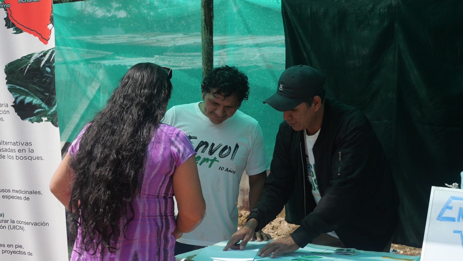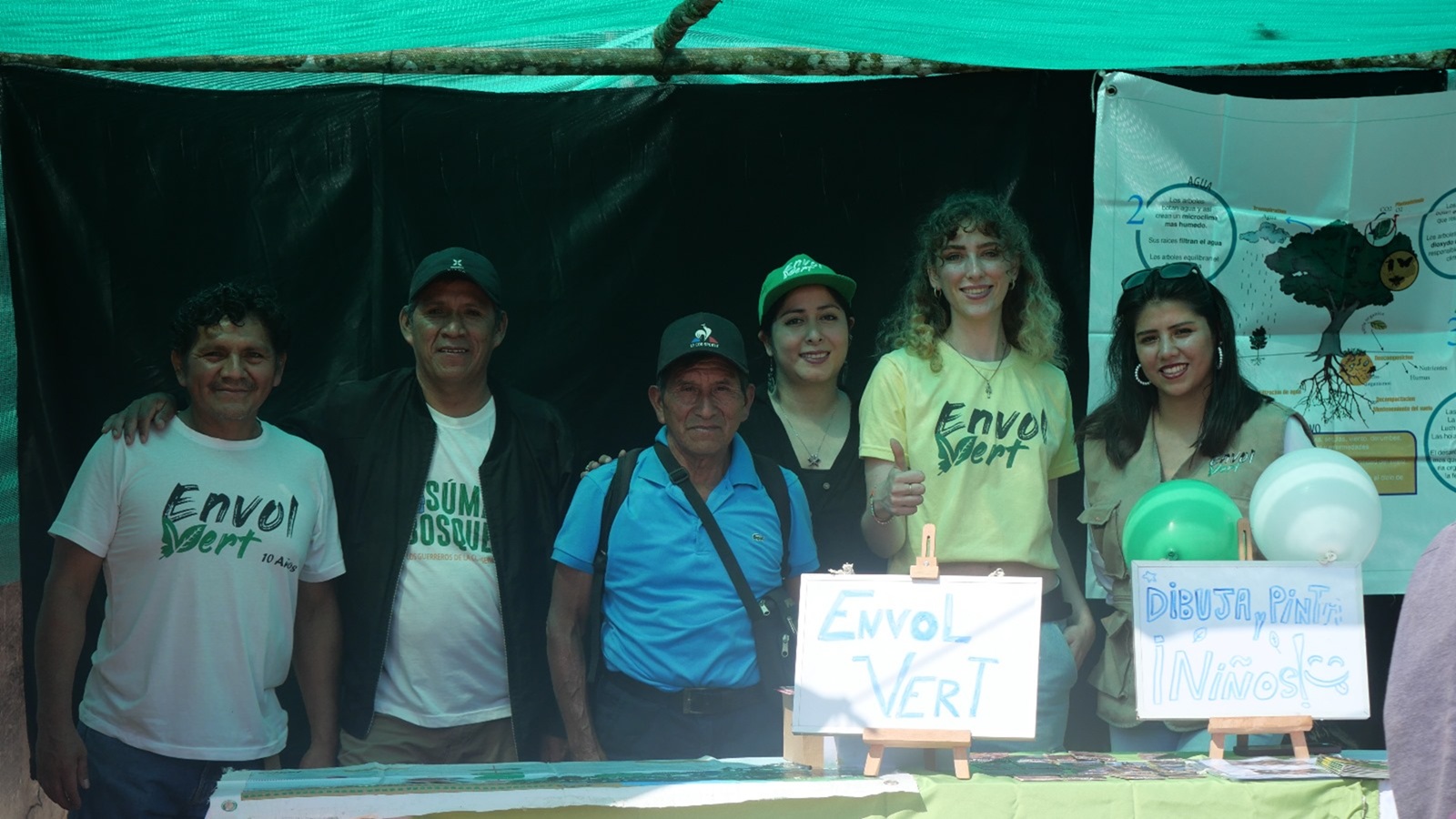 2025.07.12 El stand del equipo Envol Vert con sus participantes antiguos (agricultores de la Nueva Florida y Colonia Huanca) ©Envol Vert
