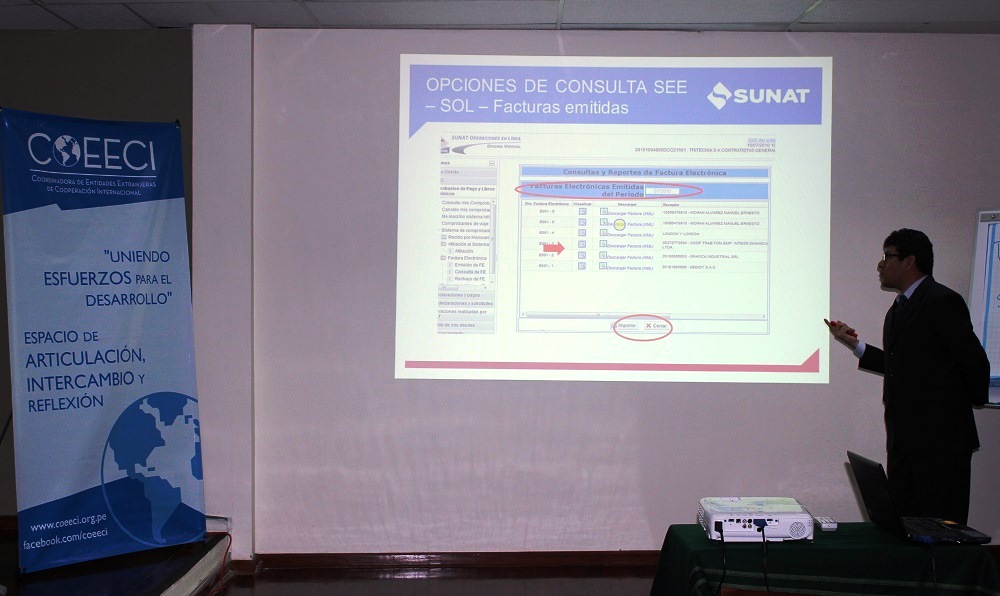 Como parte de los servicios que prestamos a los integrantes de la COEECI, el 4 de agosto de 2016, organizamos el Taller “Obligatoriedad en la Emisión Electrónica de Comprobantes de pago”, impartido por la SUNAT.