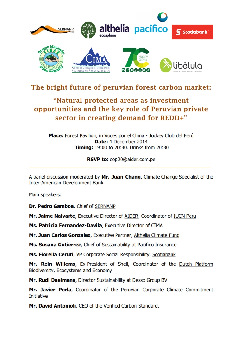 The bright future of peruvian forest carbon market: "Natural protected areas as investment opportunities and the key role of Peruvian private sector in creating demand for REDD+"
