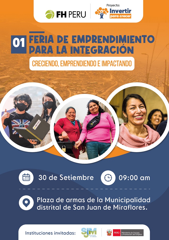 Ante esta problemática, la Fundación contra el Hambre (FH Perú) a través del proyecto que lidera: “Invertir para Crecer” y en alianza con la Subgerencia de Comercialización y Promoción Empresarial de la Municipalidad de San Juan de Miraflores, organizan la 1° Feria de Emprendimiento para la Integración de la Nueva Rinconada 2022: “Creciendo, Emprendiendo e Impactando” a realizarse este 30 de setiembre en la Plaza de Armas de San Juan de Miraflores.