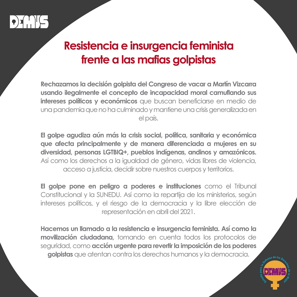 Pronunciamiento Demus: Resistencia e insurgencia feminista frente a las mafias golpistas