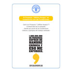 Como ya le hemos mencionado anteriormente, estamos en campaña para conseguir 1 millón de firmas para ser entregadas el 29 de noviembre próximo en la sede principal de la FAO. De esta manera estaremos haciendo una fuerte presión sobre los líderes políticos del mundo para que coloquen este tema en la agenda internacional como una prioridad y se adopte un Plan Concreto de Erradicación del Hambre en el mundo en el corto plazo. El hambre de los niños y la desnutrición nos duele y nos indigna por eso te invitamos a unirte a nuestra campaña denominada "Mil millones de personas con hambre".