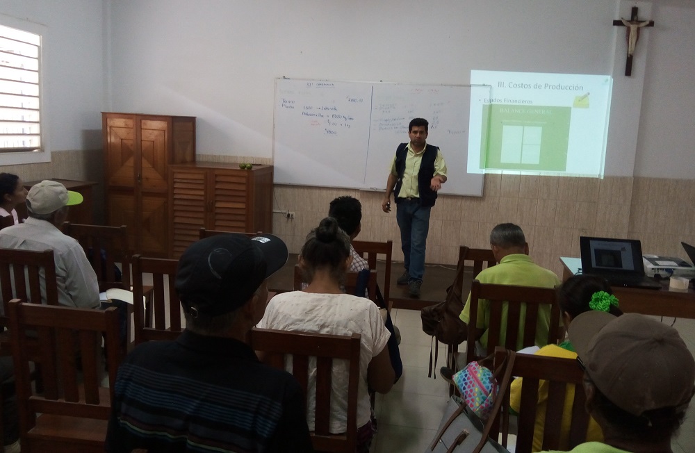 En el marco de los proyectos que Terra Nuova ejecuta en la región Ucayali, se realizó el Taller sobre Gestión Comercial. Las sesiones fueron facilitadas por el economista Antonio Galdós Veliz, quien desarrolló los temas sobre formalización (formas de asociación comercial), tributación y costos de producción.