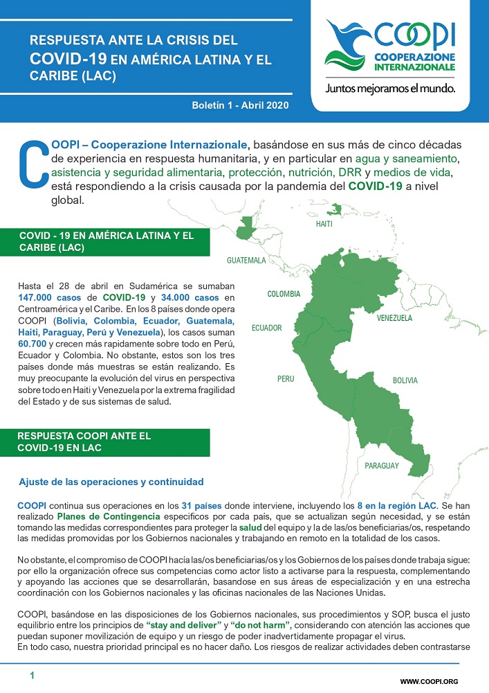Boletín de COOPI - RESPUESTA ANTE LA CRISIS DEL COVID-19 EN AMÉRICA LATINA Y EL CARIBE (LAC)